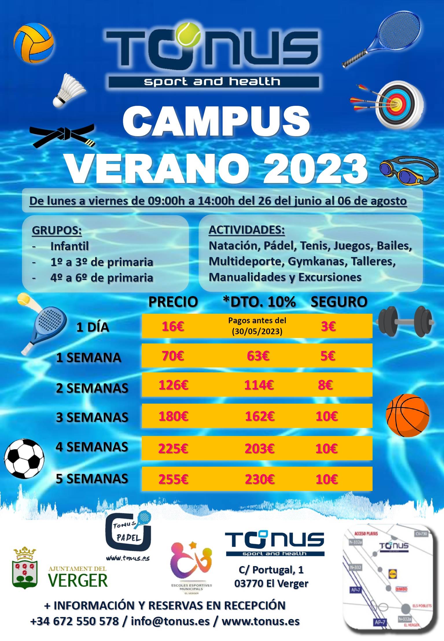 CAMPUS VERANO 2023 21/04/2023 Hola Ya están abiertas las inscripciones para el CAMPUS DE VERANO 2023 Más info en: http://tonus.es/Pages/53-CAMPUS_VERANO_2023_(INFANTIL_Y_PRIMARIA) Un saludo Tonus "Sport & Health"